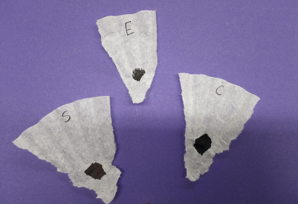 Step 2: At the top of each piece label them. S for Sharpie, E for Expo, and C for Crayola.