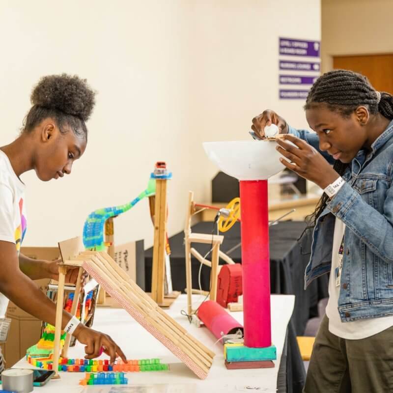 The Curtis Kinetic Science Competition is open to students in equivalent middle school grades, in teams of up to five. This competition challenges students to transform ordinary and found objects into a kinetic system inspired by Rube Goldberg’s famous machines.