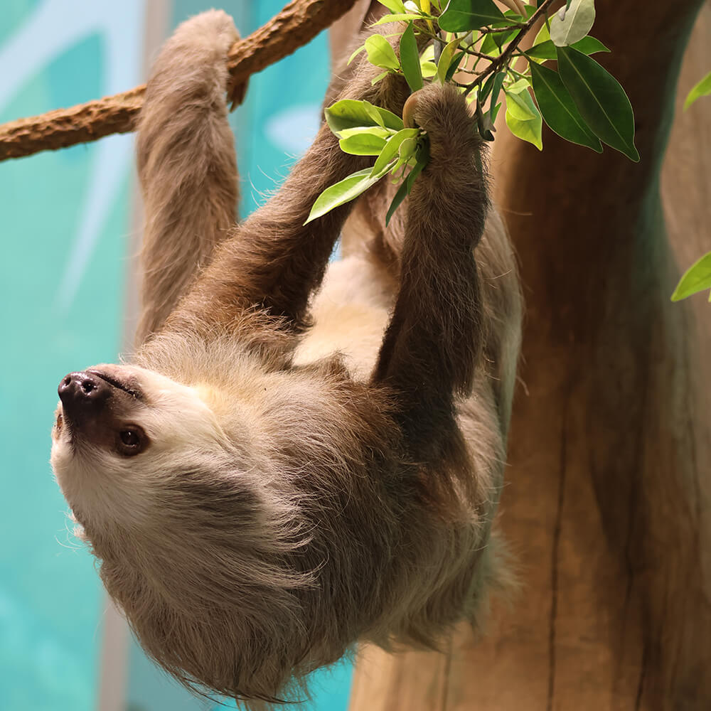 Step into the warm, lush landscape of the tropical Rainforest as you meander through this immersive exhibit. This temperature and humidity-controlled environment features free-flying birds of the rainforest, such as tanagers, honeycreepers, and blackbirds. Look to the canopy to see if you can spot a sleeping sloth or playful tamarin. Or simply relax to the sound of a 17-foot-tall waterfall cascading down into a pool filled with vibrant, freshwater fish.